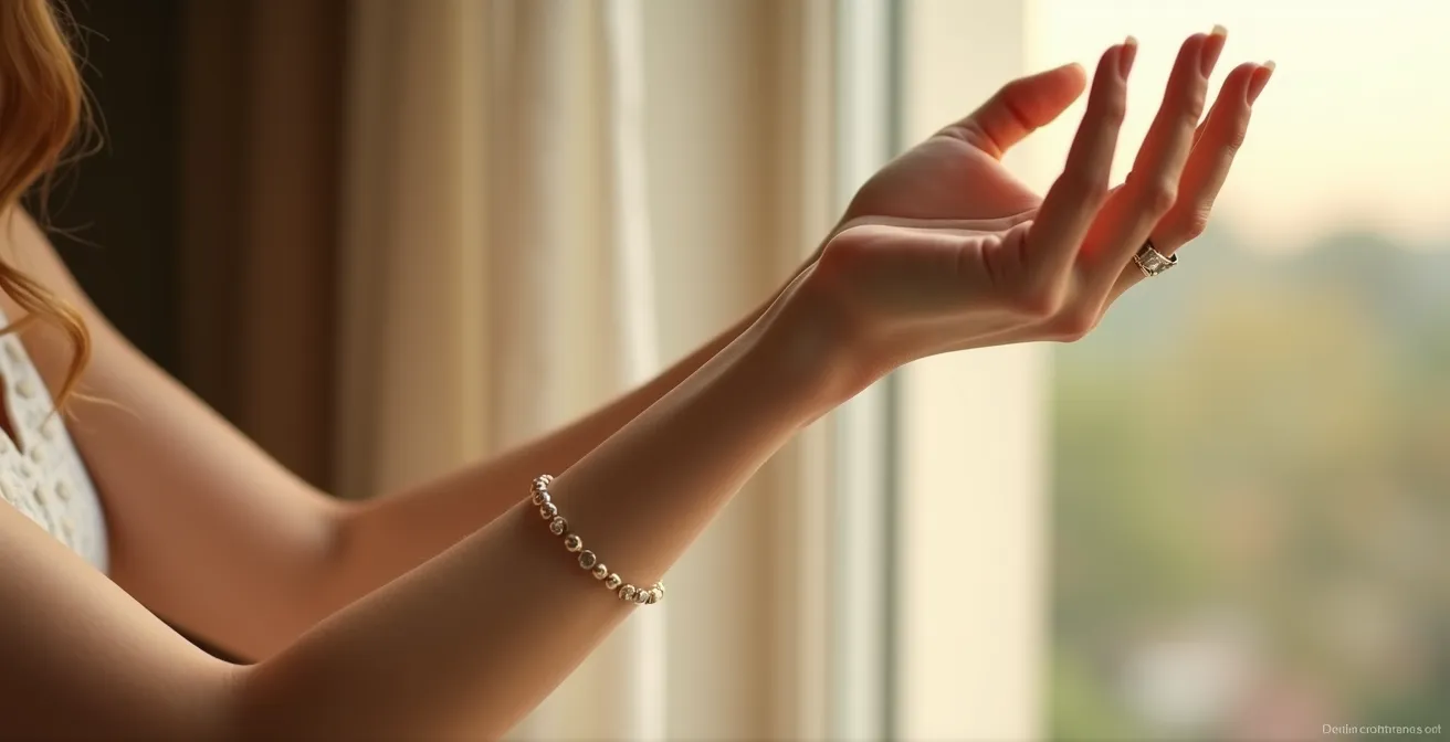 Si le test des veines est un excellent indicateur, le test des métaux est la confirmation visuelle et sans appel. L’or et l’argent ne sont pas que de simples bijoux ; en colorimétrie, ils sont les réflecteurs de lumière ultimes, un pour le chaud (l’or jaune) et un pour le froid (l’argent). En les plaçant près de votre visage, vous pouvez observer en temps réel leur effet sur votre teint. L’un va créer une harmonie lumineuse, unifiant la peau et lui donnant de l’éclat, tandis que l’autre va provoquer une dissonance, faisant ressortir les ombres, les rougeurs et donnant un aspect cireux.