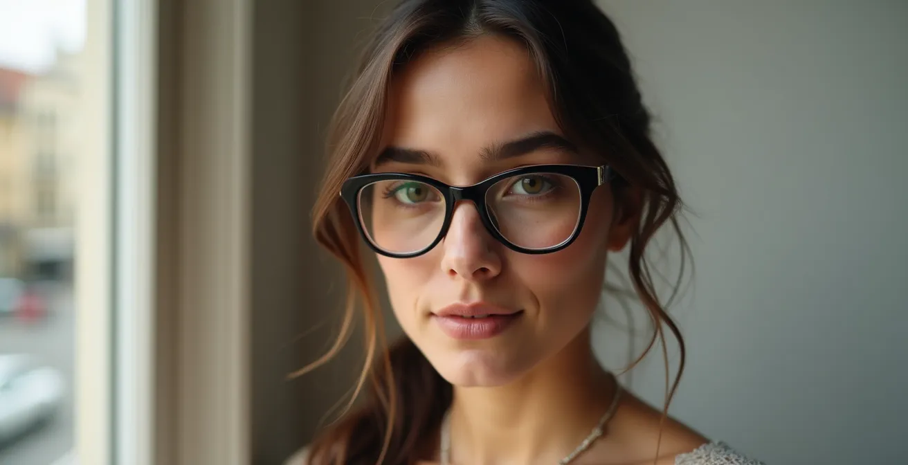 Pour de nombreuses femmes, le port quotidien de lunettes est perçu comme une contrainte. Une nécessité médicale qui semble parfois alourdir les traits, masquer le regard ou même vieillir le visage. On se résigne alors à choisir une monture « passe-partout », discrète, dans l’espoir qu’elle se fasse oublier. Les conseils habituels se limitent souvent à la règle simpliste des formes opposées : du carré pour un visage rond, du rond pour un visage carré. Si cette base n’est pas fausse, elle est radicalement insuffisante. Elle ignore que vos lunettes sont l’accessoire le plus central et le plus puissant de votre identité visuelle.